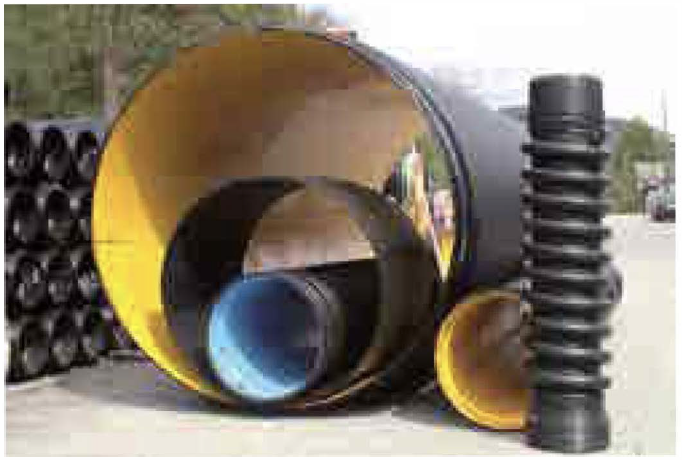 Spiral HDPE Pipe manufactures a spirally wound structured wall pipe from PE-HD, known as SPIRAL Structured Wall HDPE Pipe. The SPIRAL Structured Wall HDPE Pipe system is economical and competitive, as the structured wall concept creates a pipe with superior ring stiffness, utilizing considerably less raw material than conventional solid-walled thermoplastic pipes of equal stiffness.